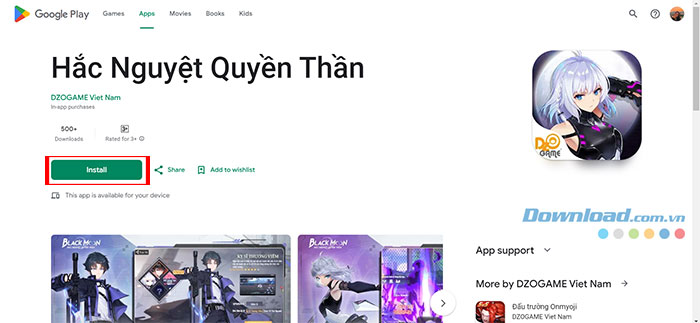 Bước 3: Nhấn nút Install để tải xuống Hắc Nguyệt Quyền Thần CBT cho Android/APK. Khi tải xuống hoàn tất, mọi người có thể bắt đầu chơi game ngay lập tức.