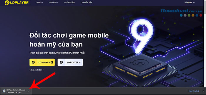 Bước 2: Để tải xuống, chỉ cần nhấp vào nút LDPlayer 9 (Beta) từ trang chủ. Sau đó chờ đợi tải xuống file .exe hoàn tất.