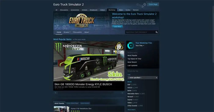 ETS2 có một trang Steam Workshop chuyên dụng, nơi người dùng có thể gửi các bản mod của mình tới và để những người chơi khác tải xuống. Đây được cho là cách an toàn và dễ dàng nhất để tải mod Euro Truck Simulator 2 và khá nhiều trò chơi Steam khác.
