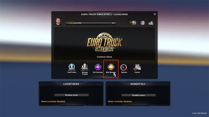 Bước 4: Khởi chạy Euro Truck Simulator 2 và chọn Mod Manager.