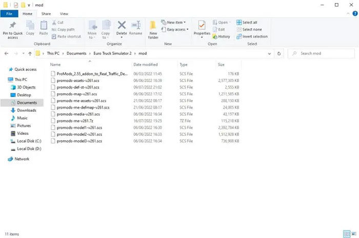 Một cách khác để cài đặt mod vào ETS2 là sao chép chúng vào thư mục trò chơi. Điều này đặc biệt phù hợp với các mod từ các trang web của bên thứ ba như ETS2.LT hoặc ModLand.net.