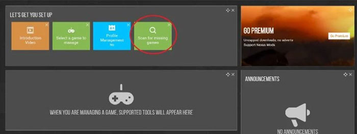Bước đầu tiên là tải xuống công cụ Vortex. Sau khi tải file về, hãy khởi chạy và Vortex sẽ được cài đặt tự động. Tiếp theo, khi phần mềm khởi chạy, chọn tùy chọn Scan for missing games để tìm kiếm các trò chơi được hỗ trợ trên máy tính và đảm bảo rằng Mount and Blade 2 Bannerlord có sẵn.