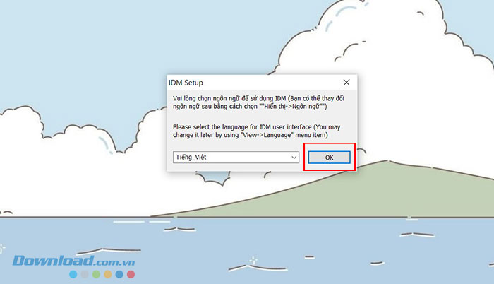 Bước 3: Chọn ngôn ngữ cho IDM và nhấn OK.