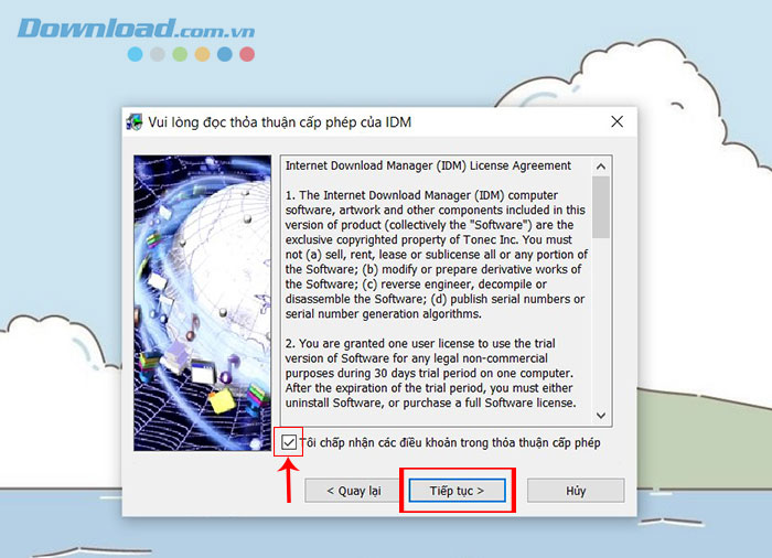 Bước 4: Nhấn Tiếp tục. Sau đó tích vào ô chấp nhận điều khoản và chọn Tiếp tục.