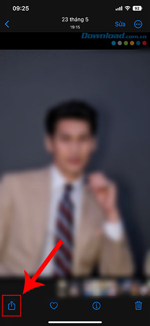 Bước 1: Mở ảnh muốn đặt làm hình nền màn hình khóa. Sau đó nhấn vào biểu tượng chia sẻ.