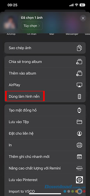 Bước 2: Bây giờ, hãy nhấn vào Dùng làm hình nền.