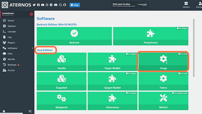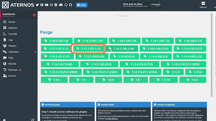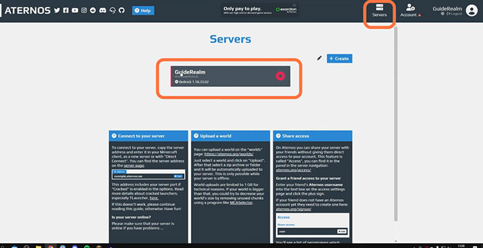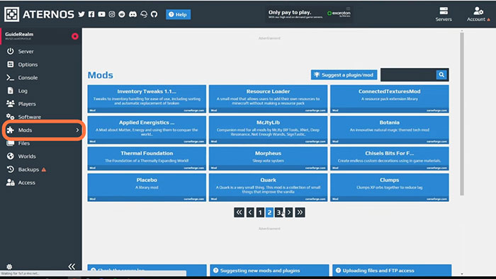 Bước 1: Truy cập https://aternos.org/:en/ và https://aternos.org/:en/ vào tài khoản của mình. Sau đó chọn máy chủ từ danh sách máy chủ muốn cài đặt bản mod. Ví dụ: GuideRealm.