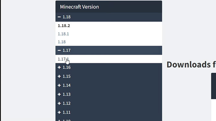 Bước 4: Chọn phiên bản hỗ trợ mod muốn cài đặt. Ngoài ra, hãy đảm bảo rằng phiên bản forge chạy trên ứng dụng khách Minecraft và Launcher phải giống như trên máy chủ. Nếu không, người chơi không thể tham gia server.