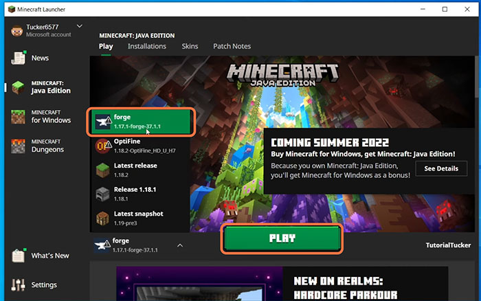 Bước 17: Ngoài ra, hãy đảm bảo chọn Forge trước khi nhấp vào nút Play.