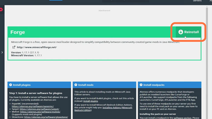 Bước 5: Bây giờ hãy nhấp vào nút Reinstall trên trang Forge chi tiết.