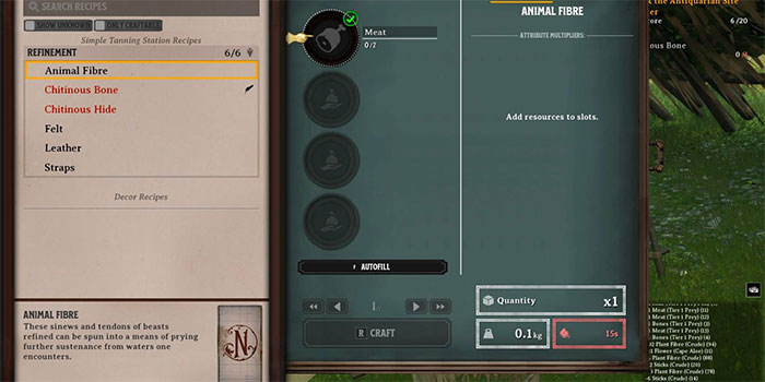 Cần câu là một thành phần thiết yếu vì những lý do hiển nhiên. Tuy nhiên, để bắt đầu quá trình chế tạo, trước tiên người chơi phải hoàn thành một điều kiện tiên quyết: xây dựng Simple Workbench. Việc sử dụng Simple Workbench không chỉ giới hạn ở việc quản lý cần câu; nó cũng được sử dụng để chế tạo nhiều vật phẩm hỗ trợ trải nghiệm chơi game trong Nightingale. Hơn nữa, để xây dựng Simple Workbench, người chơi cần có 2 loại tài nguyên dồi dào: 10 Wood Bundle và 4 Plant Fiber.