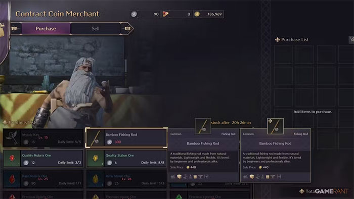 Thật không may, đây là số tiền lớn cho loại cần câu phổ biến nhất. May mắn thay, người chơi có thể nhận được cần câu này hoàn toàn miễn phí bằng cách nói chuyện với NPC ở phía bên kia đường của Contract Coin Merchant.