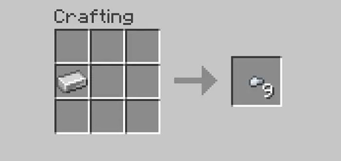 Tiếp theo, đặt một thỏi sắt ở bất kỳ đâu trên bảng chế tạo để sở hữu 9 hạt sắt.