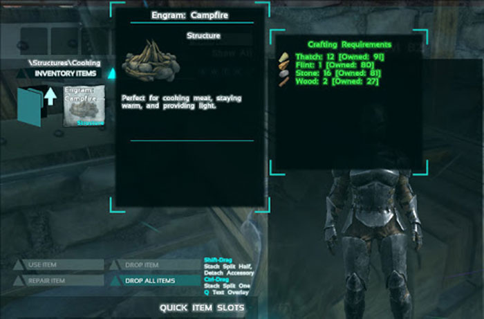 Trong ARK: Survival Evolved có những tình huống mà thời gian là điều cốt yếu. Ngay cả khi không phải đối mặt với một con vật nguy hiểm hoặc kẻ thù, người chơi vẫn có thể nhanh chóng chế tạo một số vật phẩm, chẳng hạn như thực phẩm, mà không cần phải xem qua menu Inventory.