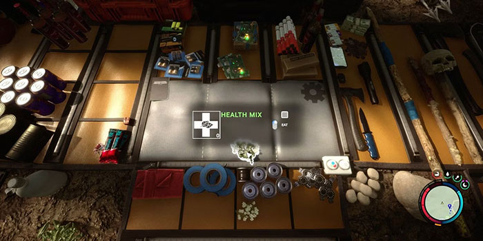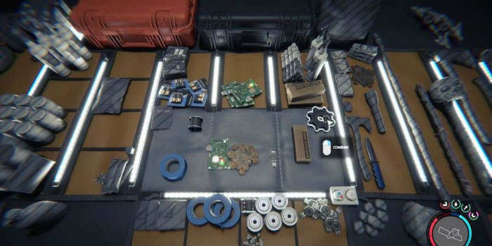 Nếu người chơi di chuột qua thiết bị, nó sẽ liệt kê các hỗn hợp nguyên liệu có thể chế tạo ra thứ gì đó b. Sau khi thêm các thành phần cần thiết, nhấp vào bánh răng và nhân vật của người chơi sẽ lắp ráp vật phẩm. Từ đó, họ có thể trang bị hoặc ăn nó (nếu ăn được) hoặc cất giữ để dùng sau.