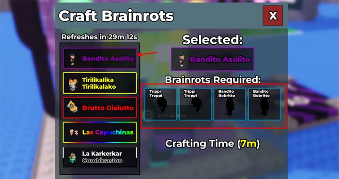 Craft Machine là một tính năng mới trong Steal a Brainrot, cho phép người chơi chế tạo hơn 20 loại brainrot độc đáo. Đây là lựa chọn tuyệt vời cho những người chơi thích sưu tập bộ brainrot đặc biệt. Trong bài viết này, hãy cùng tìm hiểu cách sử dụng Craft Machine cùng công thức chế tạo tất cả brainrot trong Steal A Brainrot.