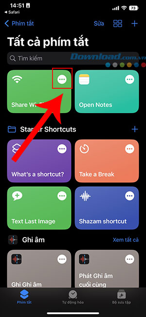 Bước 3: Bây giờ, hãy nhấn vào vòng tròn có 3 dấu chấm trên phím tắt Share Wi-Fi. Giờ đây, mọi người có thể truy cập cài đặt của phím tắt này.
