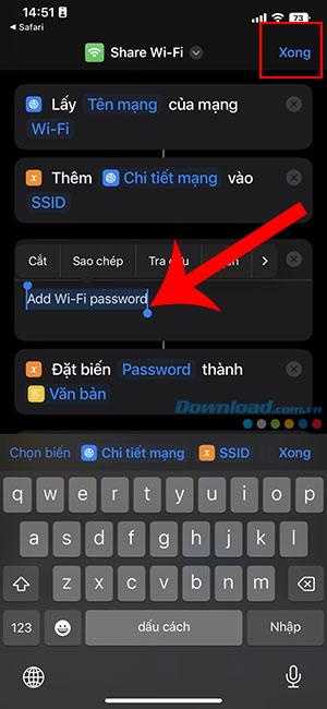 Bước 5: Sau khi đã nhập mật khẩu, hãy nhấn vào Xong ở góc trên bên phải.