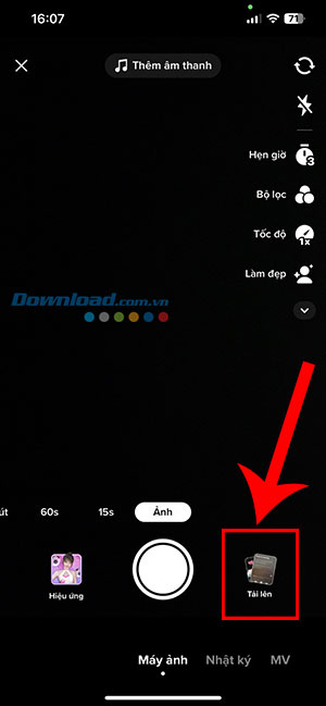 Bước 2: Chạm vào Tải lên và chọn hình ảnh, video mà mình muốn chỉnh sửa giọng nói.