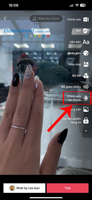 Bước 4: Trong thanh công cụ vừa mở ở phía bên phải giao diện, hãy chạm vào Chỉnh sửa âm thanh.