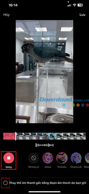 Mọi người cũng có thể nhấn vào Ghi âm để thu thêm của mình kèm với hiệu ứng giọng nói. Âm thanh gốc và tiếng được ghi âm sẽ phát cùng nhau.