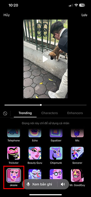 Bước 5: Thao tác này sẽ mở ra danh sách các hiệu ứng âm thanh hiện có của TikTok. Nhấn vào tùy chọn hiệu ứng Jessie để áp dụng hiệu ứng cho toàn bộ video. Hiệu ứng sẽ biến đổi âm thanh gốc trong video.