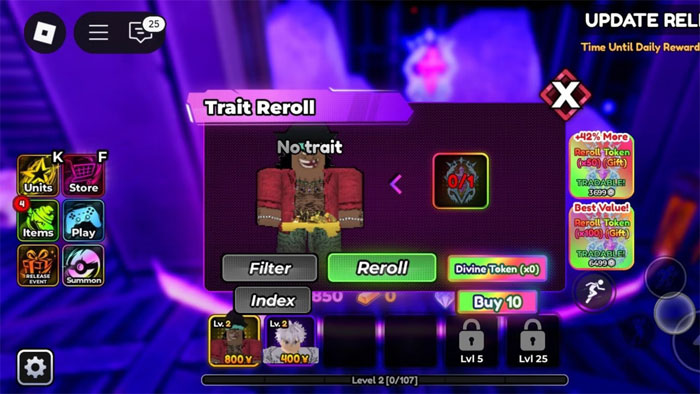 - Luôn reroll trait cho nhân vật cấp cao để mở khóa sức mạnh ẩn.