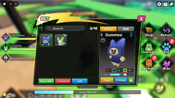 Nếu không thể đánh bại một quái vật nhất định, điều đó có nghĩa là game thủ cần những thú cưng mạnh hơn. Thú cưng sẽ tăng cấp khi chiến đấu và đánh bại quái vật khác, nhưng người chơi cũng có thể tăng tốc quá trình này.
