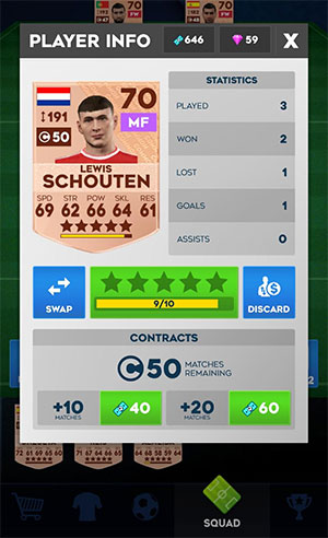 Khi nhận được thẻ cầu thủ mới, theo mặc định, thẻ đó sẽ đi kèm với hợp đồng 50 trận đấu. Với mỗi trận đấu có trong XI, số hợp đồng sẽ giảm đi một cho thẻ của cầu thủ đó. Để gia hạn/tăng thời hạn hợp đồng cho thẻ cầu thủ, người chơi có thể sử dụng Bux hoặc tiếp tục kích hoạt Contact Freeze để đảm bảo rằng số trận đấu không giảm đối với cầu thủ sau trận đấu đó.