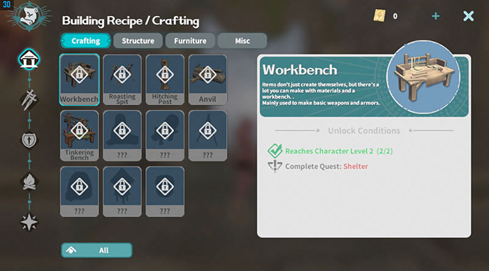 Người chơi nên ưu tiên chế tạo rương cá nhân và hộp lưu trữ, vì không gian kho bị giới hạn trong giai đoạn đầu của trò chơi. Điều này sẽ làm giảm nhu cầu phải di chuyển thường xuyên để lưu trữ các mặt hàng dư thừa.