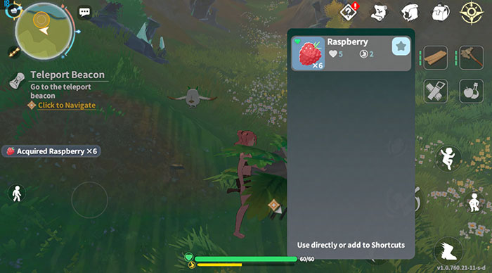 Ưu tiên chính trong trò chơi này là duy trì sức khỏe và cơn đói của nhân vật ở mức ổn định. Tham gia vào các trận chiến với quái vật vào ban đêm có thể nguy hiểm. Để tránh điều này, hãy mang theo giường bên mình và ngủ qua đêm. Để chuẩn bị thức ăn, người chơi phải nhóm lửa, chọn thức ăn/công thức mong muốn và đợi thức ăn chín. Hãy thận trọng đừng để nó quá lâu, nếu không món ăn sẽ trở thành than củi. Trò chơi tương tự như Minecraft ở khía cạnh này.
