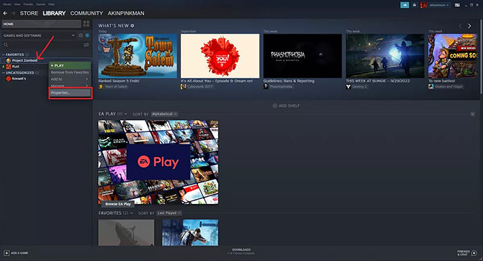 Để bật Debug Mode, tất cả những gì người chơi cần làm là nhấp chuột phải vào Project Zomboid trong Library của Steam và chọn Properties.