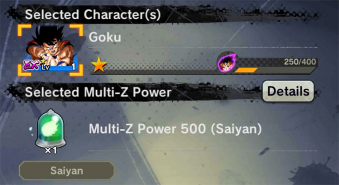Mỗi ngôi sao làm cho nhân vật mạnh mẽ hơn, với 0 là thấp nhất và 7 là cao nhất. Khi nâng cấp lên cấp sao cao hơn, Z-Powers sẽ lại về 0 và chi phí tăng sức mạnh cho nhân vật sẽ cao hơn cấp trước đó. Đôi khi game thủ có thể nhận được Z-Power miễn phí từ các sự kiện hoặc nhiệm vụ đặc biệt, vì vậy hãy chú ý hoàn thành tất cả.