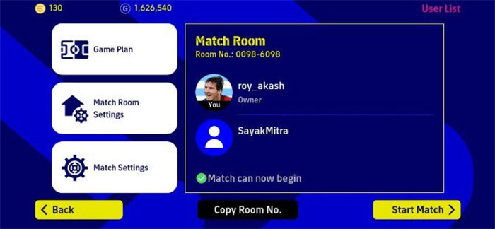 Bước 3: Nhấn vào nút Create ở góc dưới cùng bên phải và Match Room mới sẽ được tạo. Nhấn vào tùy chọn Copy Room No. để sao chép số phòng và dán để cho bạn bè truy cập. Đừng quên cung cấp cho họ mật khẩu để tham gia Match Room.