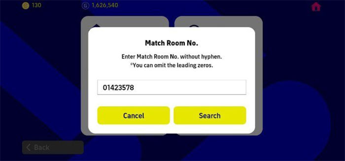 Bước 2: Nhập số phòng nhận được từ host của Match Room và nhấn Search. Tiếp tục nhập mật khẩu của phòng và nhấn Enter.