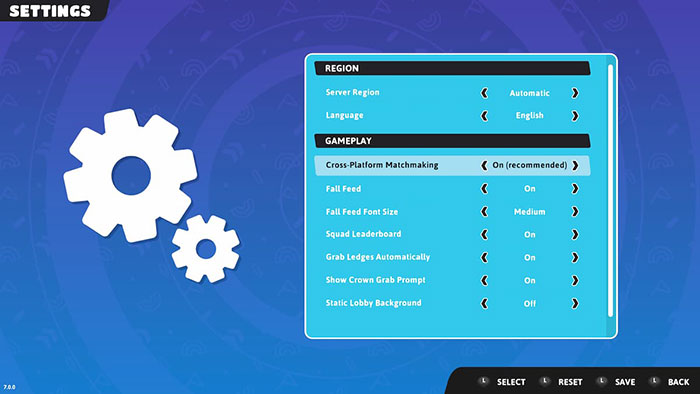 Tiếp theo, chọn Options và sau đó cuộn xuống phần Gameplay ở đầu. Đảm bảo tùy chọn Cross-Platform Matchmaking được bật để chơi Fall Guys với bạn bè từ mọi nền tảng.