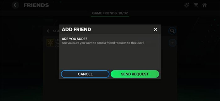- Khi tên người dùng của bạn bè bật lên, hãy nhấn nút Add Friend bên cạnh và nhấn vào Send Request.