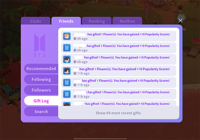 Người chơi càng có nhiều bạn bè trong BTS Island: In the SEOM thì càng có nhiều cơ hội nhận được vô số đặc quyền dưới dạng quà tặng. Những người mà game thủ theo dõi và được theo dõi ngược trở lại sẽ tính là bạn bè.