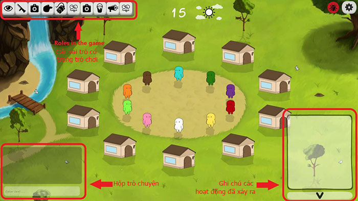 Ở góc dưới bên phải là ghi chú trong trò chơi của mọi người. Vì vậy, những gì mọi ngườis làm trong trò chơi sẽ được ghi lại. Đồng thời, những người chơi đã chết và vai trò của họ cũng vậy. Những ghi chú này chỉ dành riêng cho Host (người chủ trì phòng), không ai có thể xem chúng.