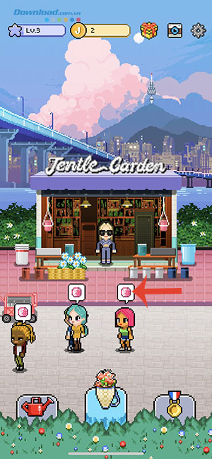 Trên đường đi sẽ có xuất hiện nhiều vị khách, trên đầu họ sẽ hiển thị loại hoa muốn mua. Nhấn vào các vị khách để bán hoa và nhận tiền xu. Lưu ý rằng, nếu cửa hàng không có loại hoa khách hàng muốn, họ sẽ rời đi. Vì vậy hãy trồng thật nhiều các loại hoa để đáp ứng nhu cầu của những vị khách.
