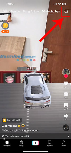 Bước 1: Nếu không thấy hiệu ứng này được dùng trong video của người khác, mọi người có thể dùng thanh tìm kiếm để tìm game Mosquitos’ Mission. Tại Trang chủ TikTok, chạm vào thanh tìm kiếm ở góc trên cùng bên phải.