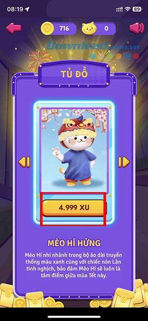 Tiền xu thu thập được có thể dùng để đổi các trang phục đẹp cho chú mèo trong mục Tủ đồ.