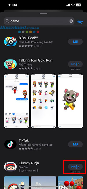 Bước 4: Nhấn nút Nhận để tải xuống trò chơi, sau đó ấn vào Mở.
