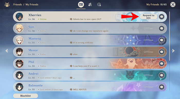 Gửi yêu cầu kết bạn và sau khi yêu cầu được chấp nhận, người chơi có thể bắt đầu tham gia vào thế giới của bạn bè.
