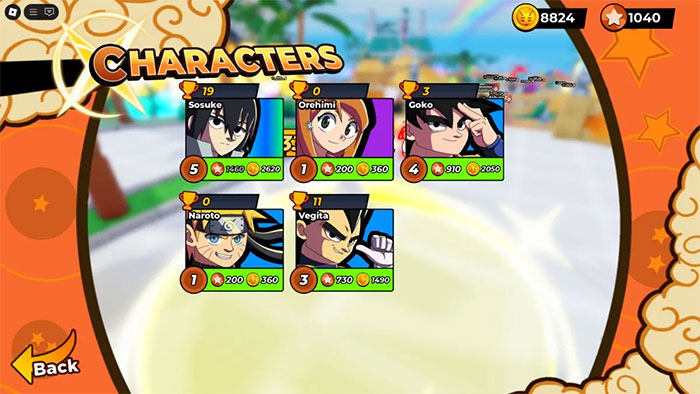 Tân thủ bắt đầu với 3 nhân vật trong Jump Stars là Vegita, Goko và Naroto. Mặc dù mọi người có thể tiếp tục sử dụng các nhân vật này để tiến triển, nhưng tốt hơn hết là hãy thử và có được các đơn vị tốt hơn.