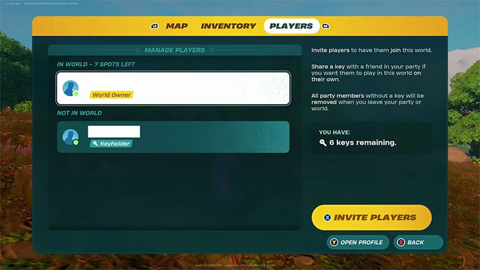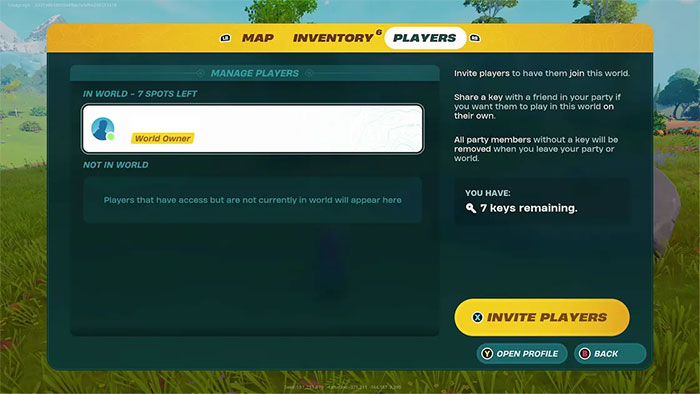 World Key là vật phẩm cho phép bạn bè đến thăm và xây dựng ngôi làng cho người chơi. Tương tự như trước, hãy đi tới tab Players từ menu bản đồ và bên cạnh tên của bạn bè, hãy chọn tùy chọn cung cấp World Key người bạn đó. Khi chọn tùy chọn đó, người nhận chìa khóa World Key sẽ có quyền truy cập vào làng của bạn.