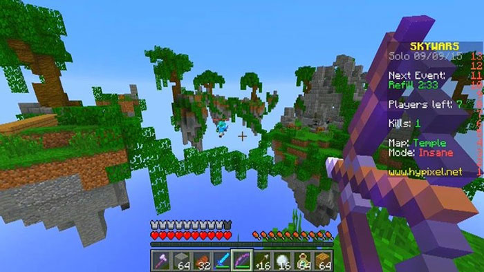 Đầu tiên, để chơi Sky Wars, game thủ cần tham gia vào một máy chủ có minigame Skywars. Mọi người có thể lựa chọn Hypixel, Mineplex hoặc Arkham Network.