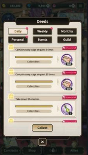Dreamy Days sẽ cung cấp cho game thủ một số món quà thân mật. Nhiệm vụ hàng ngày này có 3 loại cấp độ khó, cũng như các phần nhân vật. Quà quý hiếm màu tím là món quà giá trị nhất mà người chơi có thể nhận được từ nhiệm vụ Dream Days.