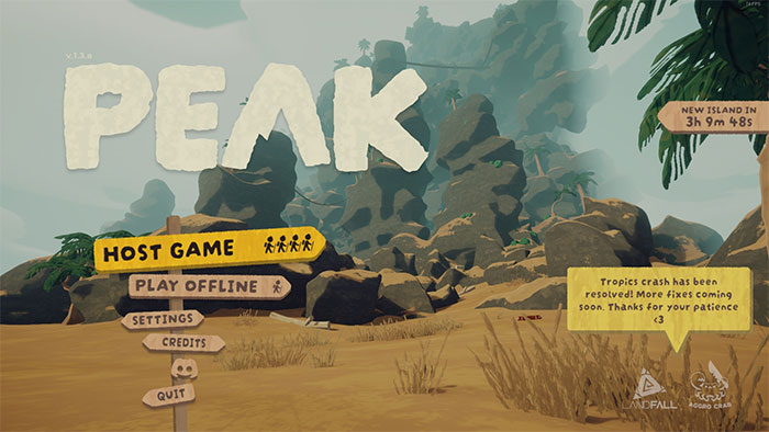 Trước khi khởi động PEAK lần đầu trên thiết bị, hãy đảm bảo đã thêm bạn bè vào tài khoản Steam, vì mọi người chỉ có thể mời những người trong danh sách bạn bè. Khi bạn bè đã online và khởi động game, người chủ phòng cần tạo một sảnh chơi bằng cách nhấn nút Host Game tại menu chính.