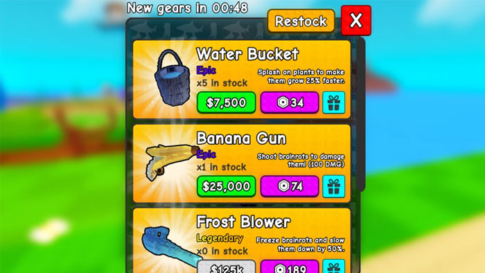 Gear Shop do NPC Joel quản lý, cung cấp những vật dụng hữu ích trong Plants vs Brainrots: